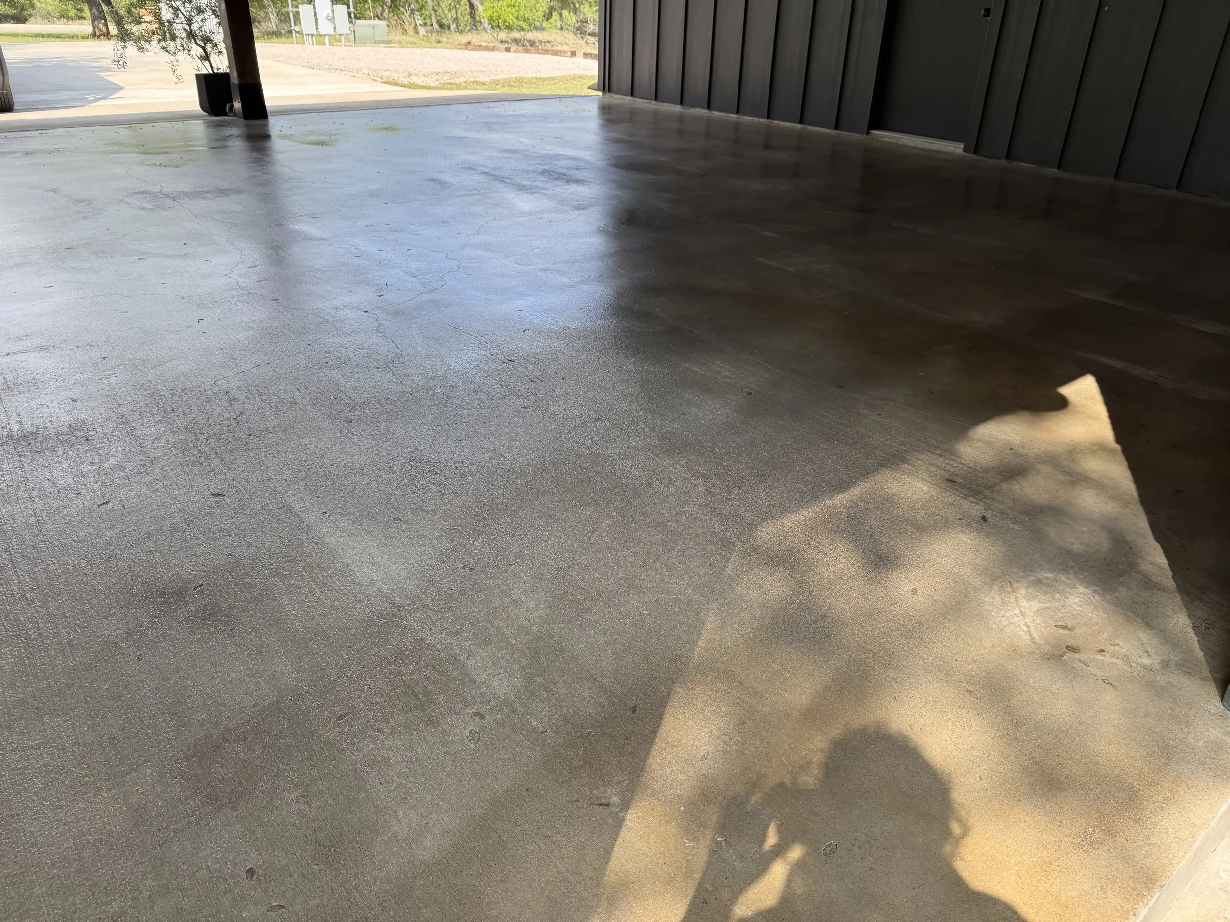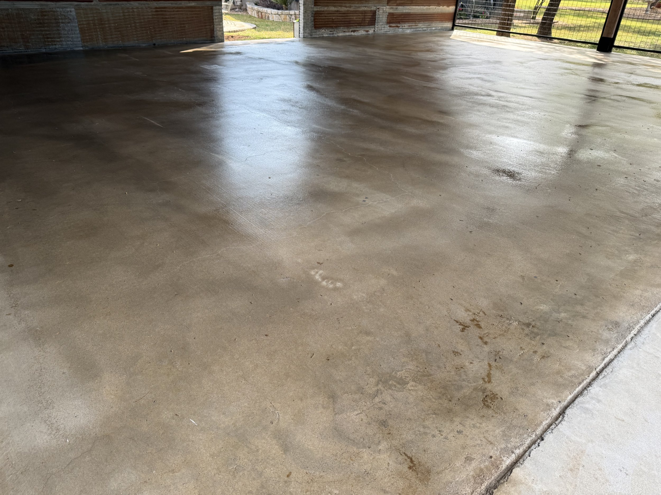 Aggressively cleaning the concrete and sealing with a commercial-grade sealer enhances the natural colors. This also stops the concrete from dusting and helps resists stains and tire marks. This is timeless look and it happens to be surprisingly inexpensive.
